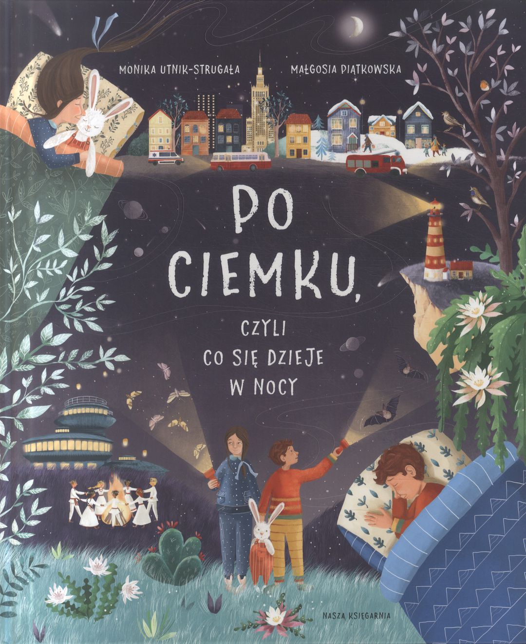 Kiedy moja córeczka była mała, często budziła się w nocy. Musiałam do niej wstawać, karmić ją i tulić, by ponownie usnęła. Początkowo takie pobudki nie przychodziły mi łatwo. Z czasem zaczęłam się jednak przyzwyczajać, a nawet dostrzegać pewne plusy – mogłam bowiem obserwować, co się dzieje na świecie, gdy wszyscy smacznie śpią. Zauważyłam, że w oknach pobliskiego biurowca do późnej nocy pali się światło, choć pracownicy dawno już wyszli do domu – to sprzątaczki porządkowały gabinety. Że gdy wszyscy odpoczywają, na ulicach pustego miasta ciężko pracują polewaczki czyszczące jezdnie. Że sąsiad ślęczy przy biurku i coś pisze. Że przez trawnik przebiegła mysz. I że już o piątej pod okoliczne sklepy podjeżdżają pierwsze samochody załadowane pod dach świeżym chlebem. Słowem, zrozumiałam, że noc skrywa mnóstwo tajemnic, których nigdy bym nie odkryła, gdybym nie musiała wstawać do córki. Chcecie dowiedzieć się, co jeszcze dzieje się po ciemku? To posłuchajcie.