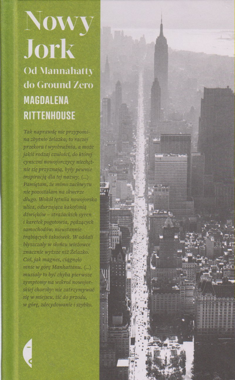 Czy holenderscy osadnicy naprawdę kupili Manhattan od Indian za garść paciorków? Czemu budową Brooklińskiego Mostu kierowała kobieta bez inżynieryjnego wykształcenia? Co późną nocą robiła grupa bankierów uwięzionych w bibliotece pełnej drogocennych rękopisów? Magdalena Rittenhouse odpowiada na te pytania błyskotliwie i z pasją łącząc reporterską rzetelność z dociekliwością miłośnika historii i miejskiego przewodnika. Pisze o współczesnych reklamach przy Times Square i o legendarnym założycielu „New Yorkera”, po trosze hipisie, a po trosze chasydzie; opowiada o wielkich transakcjach finansowych i najdroższych sukienkach, których prototypy powstają w kuchenkach mikrofalowych. Spacerując po mieście, przemieszcza się w przestrzeni i czasie i układa ze swych opowieści wielobarwny kolaż. Efektem jest książka, która zaprasza do wędrówki po tym fascynującym, mitycznym i wciąż nieznanym mieście.