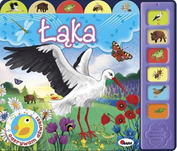 Publikacja z MODUŁEM DŹWIĘKOWYM! Dziecko odkryje 6 RÓŻNYCH DŹWIĘKÓW wydawanych przez zwierzęta. Do lektury zachęcają SYMPATYCZNE ILUSTRACJE i PROSTE HISTORYJKI. To KSIĄŻKA POLISENSORYCZNA - działa na zmysły WZROKU, SŁUCHU i DOTYKU. Publikacja zawiera krótkie SCENKI RODZAJOWE, których bohaterami są ZWIERZĘTA ŻYJĄCE NA ŁĄCE. Do każdej historyjki jest dopasowany PRZYCISK DŹWIĘKOWY. Po jego naciśnięciu maluszek usłyszy np. RECHOT ŻABY lub ŚPIEW SKOWRONKA. Atutem książki są również KOLOROWE WYPUSTKI z obrazkami przedstawiającymi zwierzęta. Dzięki nim można łatwo otworzyć książkę na wybranym dźwięku.